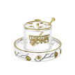 The Golden Branch Honey Dish combines an elegant Golden Branch design with practical features. It showcases raised 3D letters and a detailed border, adding a touch of sophistication. The included base prevents drips, keeping your surfaces clean, while the magnetic lid secures freshness. A spoon cutout and matching spoon complete this refined set, making it a perfect addition to your Yom Tov table.