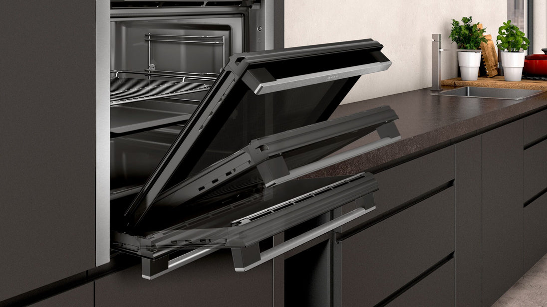 Built-in Slide&Hide® oven with fixed handle - unrestricted access to the oven interior thanks to the fully retracting oven door
