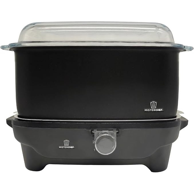 MisterChef Slowé Cooker 7qt / 6.6L Black Slow Cooker with Flat Glass Cover and Cool Touch